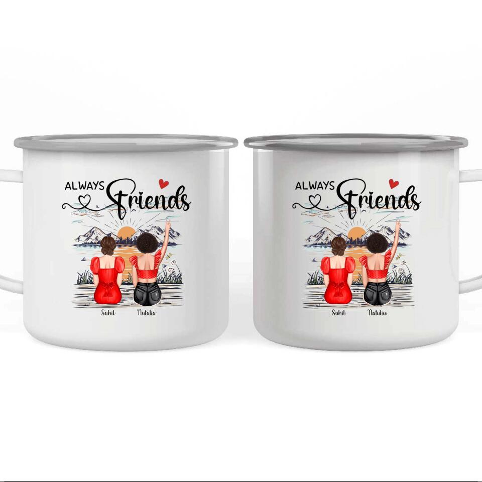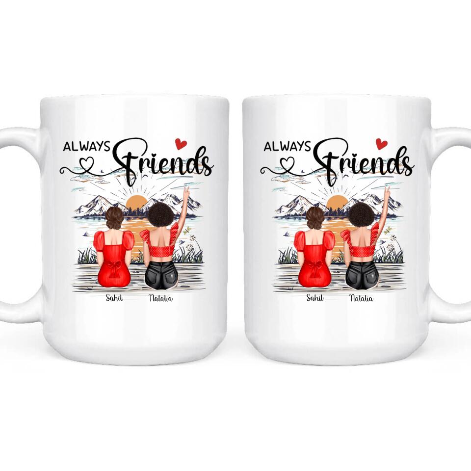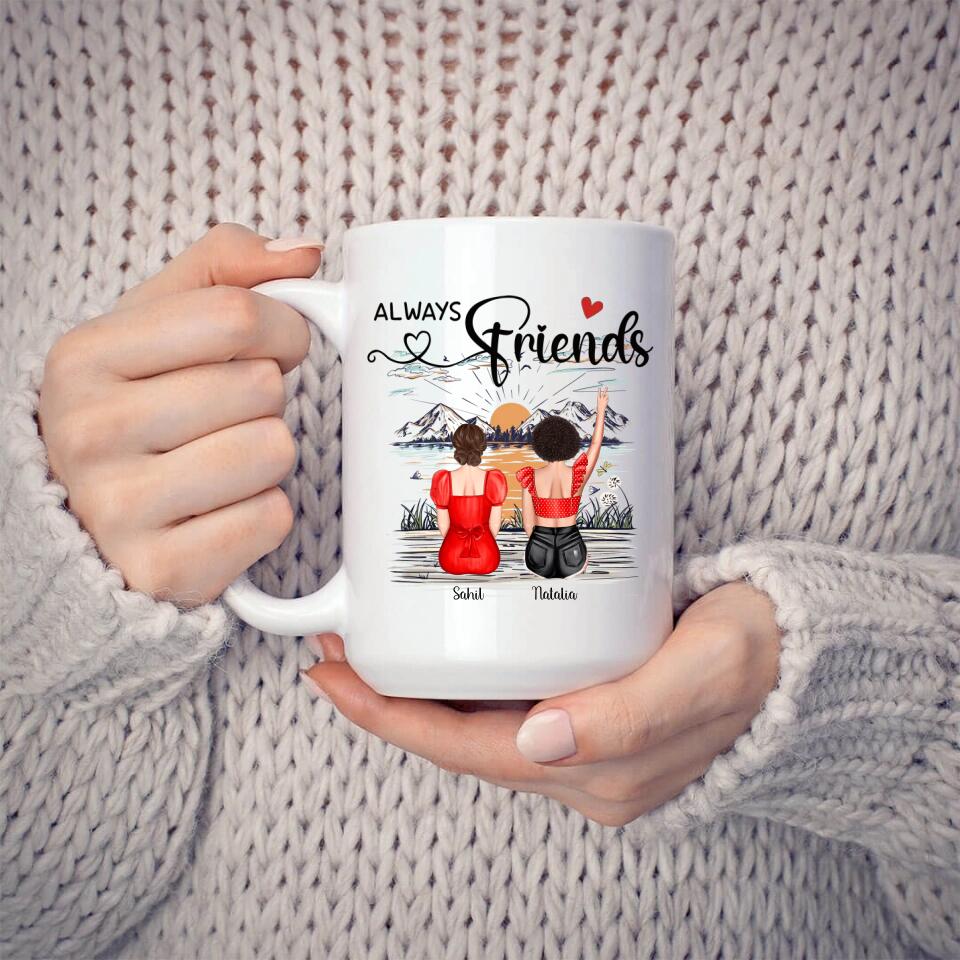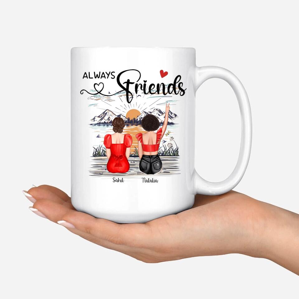 The "Always Friends" Personalized Friends Mug is a wonderful way to celebrate the friendship between friends. Fun personalized sister images and name designs, perfect gifts for birthdays, friendship days, special anniversaries and more.