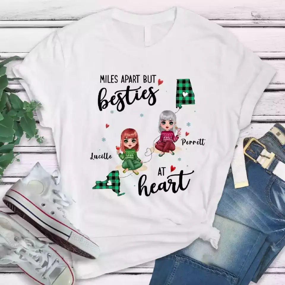 Distance means so little when friendship means so much! These Long Distance Bestie T-Shirts are the perfect way to stay connected no matter how far apart you are. Personalize each shirt with your names and states (or countries!) to create a heartfelt symbol of your unbreakable bond.
