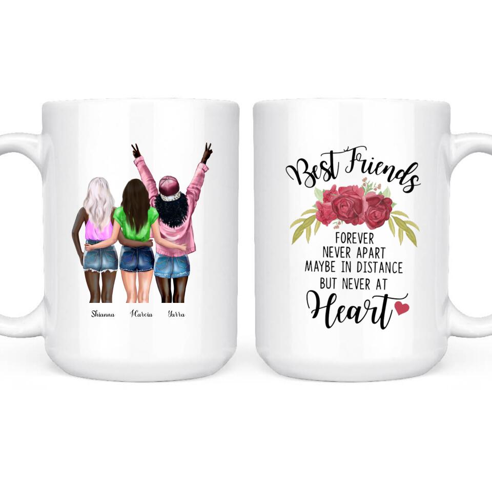 3 Sisters Mug - Best Friends Forever Never Apart Maybe In Distance But Never At Heart Personalized Mug