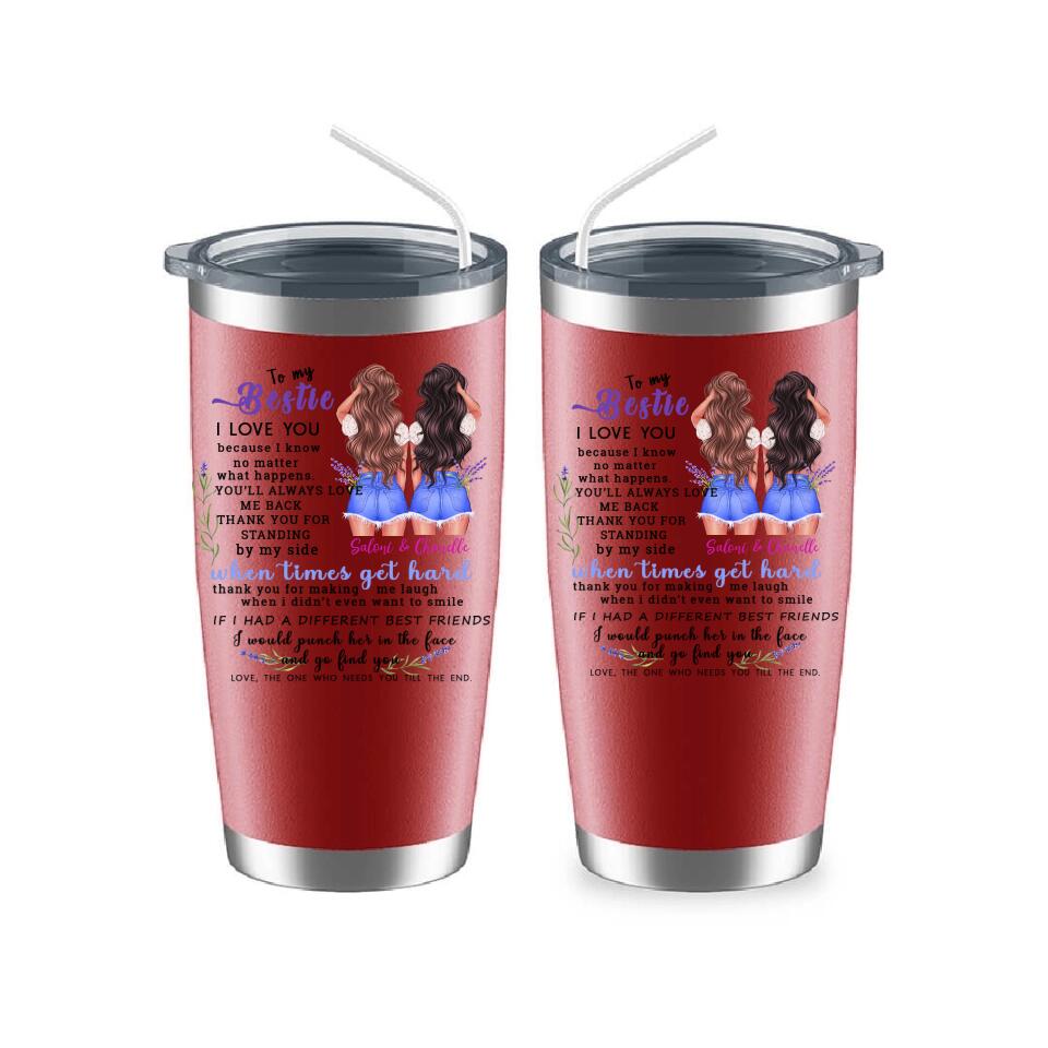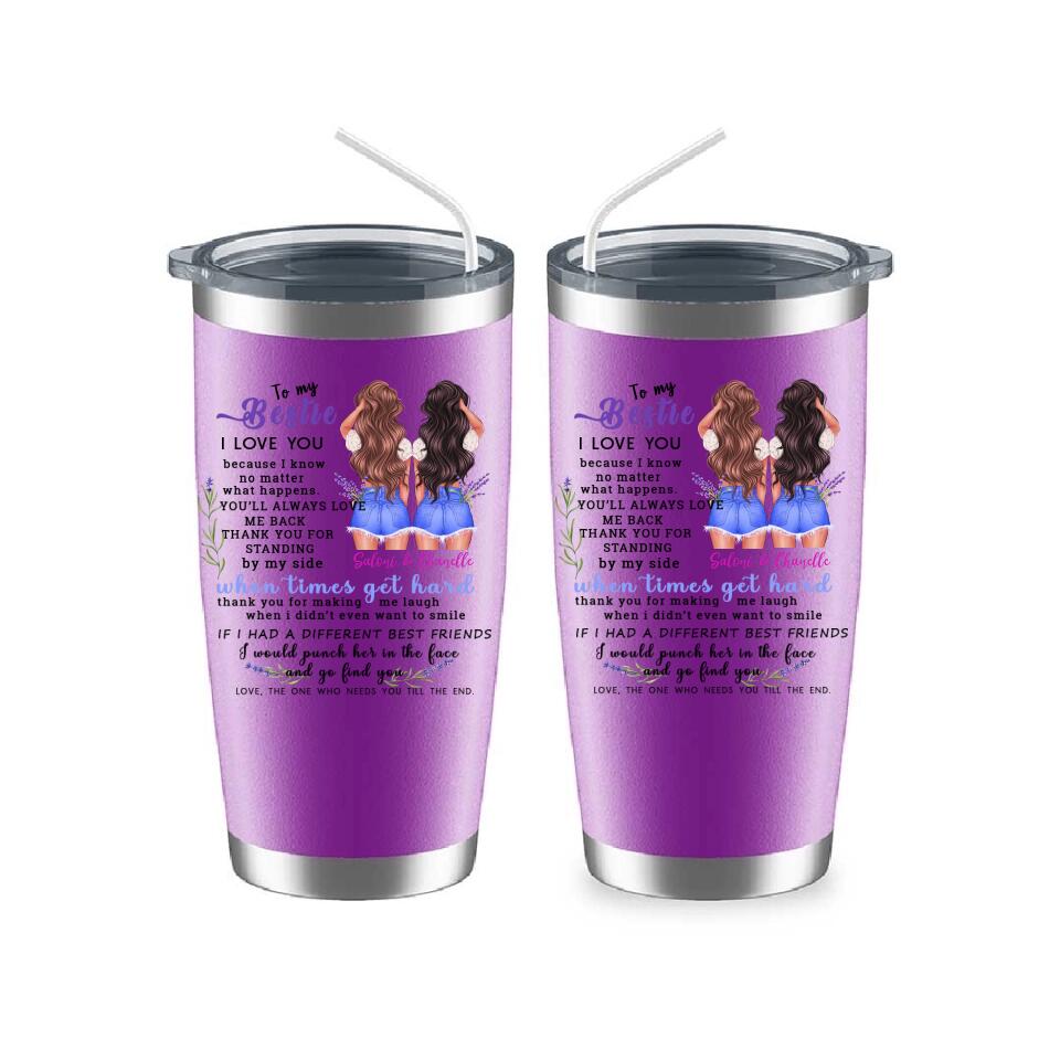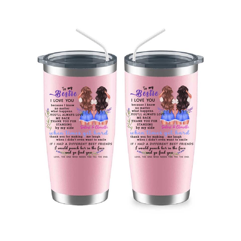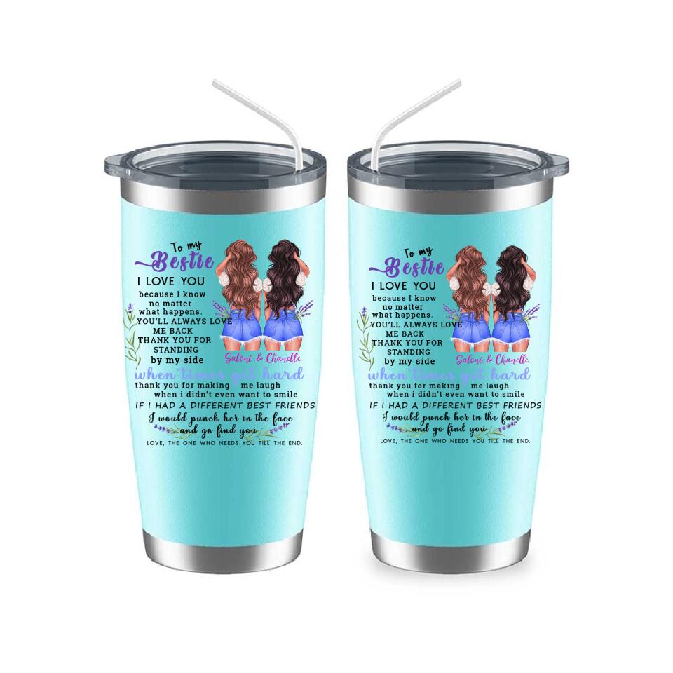This "To My Bestie Personalized 2 Sisters Tumbler" is a unique personalized gift designed for sisters. Interesting image design, hairstyle, skin color, clothing and other personalized designs, enjoy a unique and interesting personalized gift design.