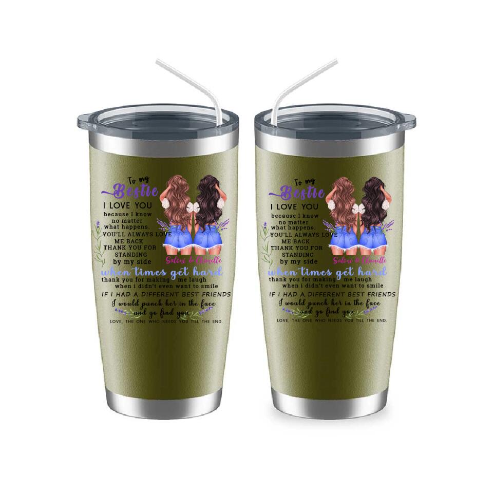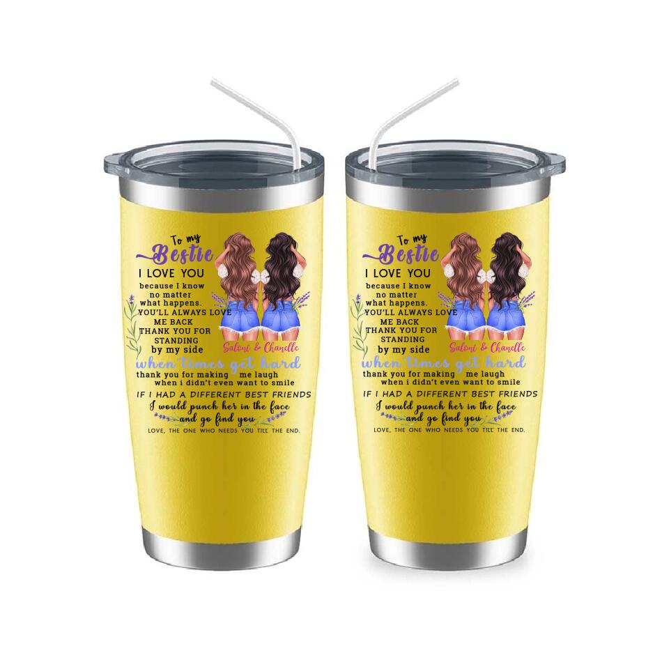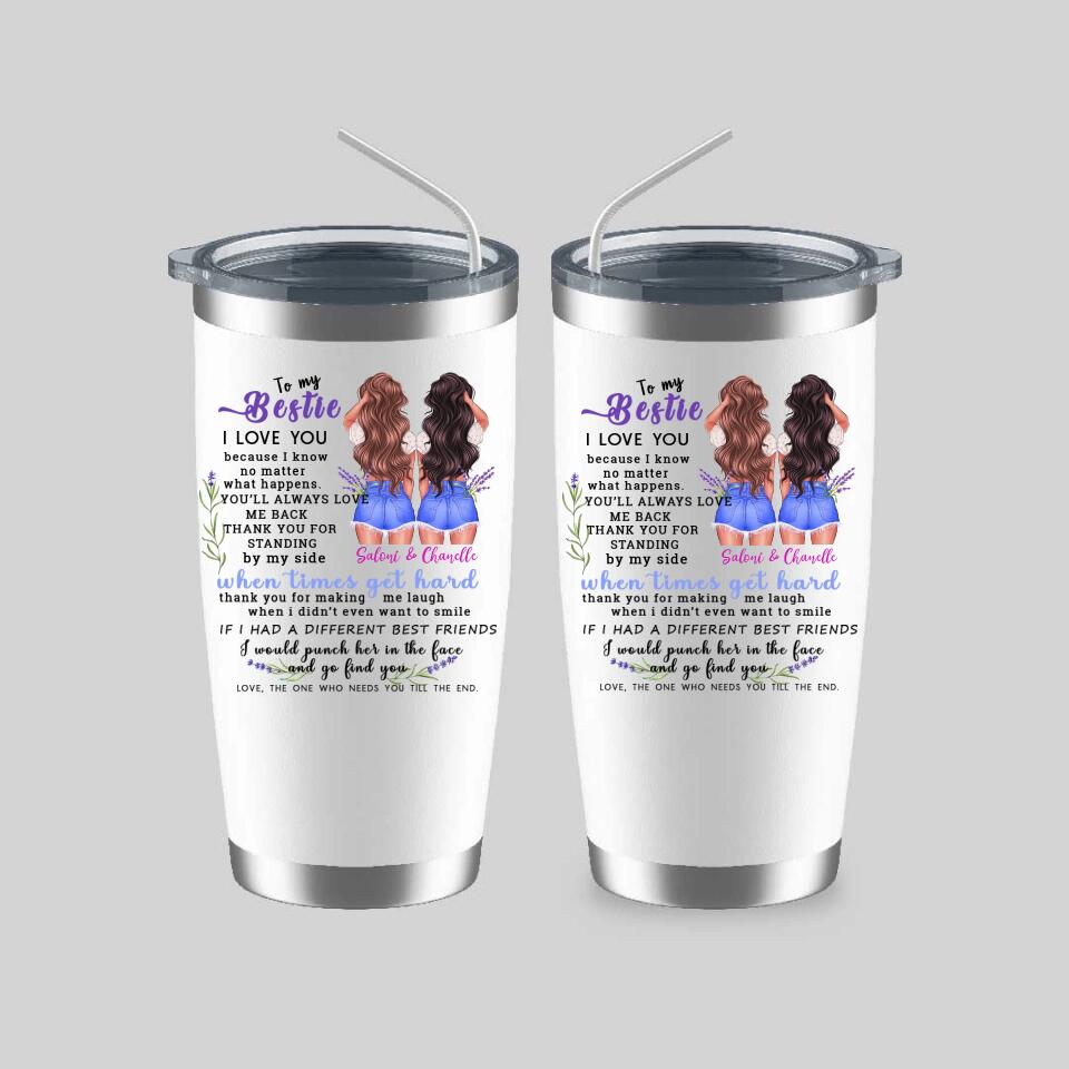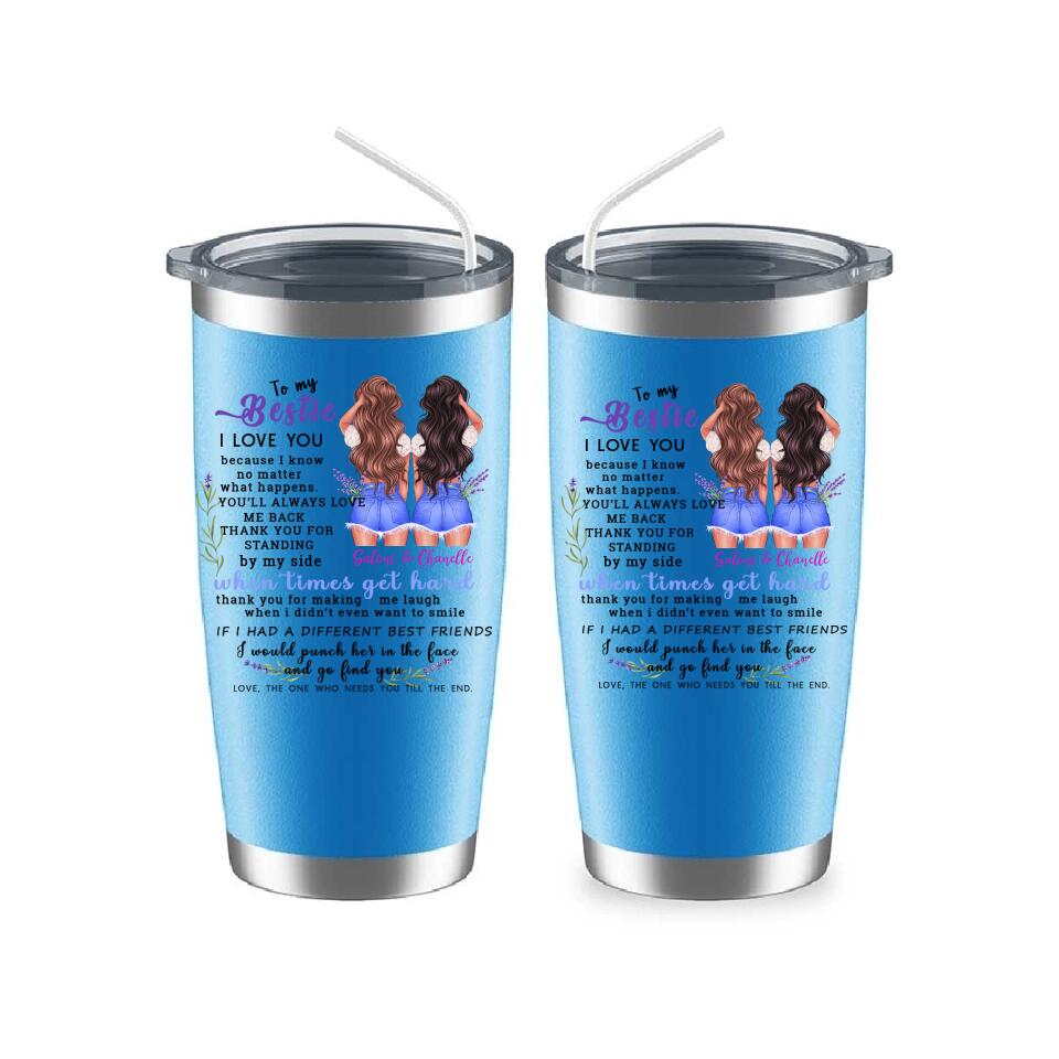 This "To My Bestie Personalized 2 Sisters Tumbler" is a unique personalized gift designed for sisters. Interesting image design, hairstyle, skin color, clothing and other personalized designs, enjoy a unique and interesting personalized gift design.