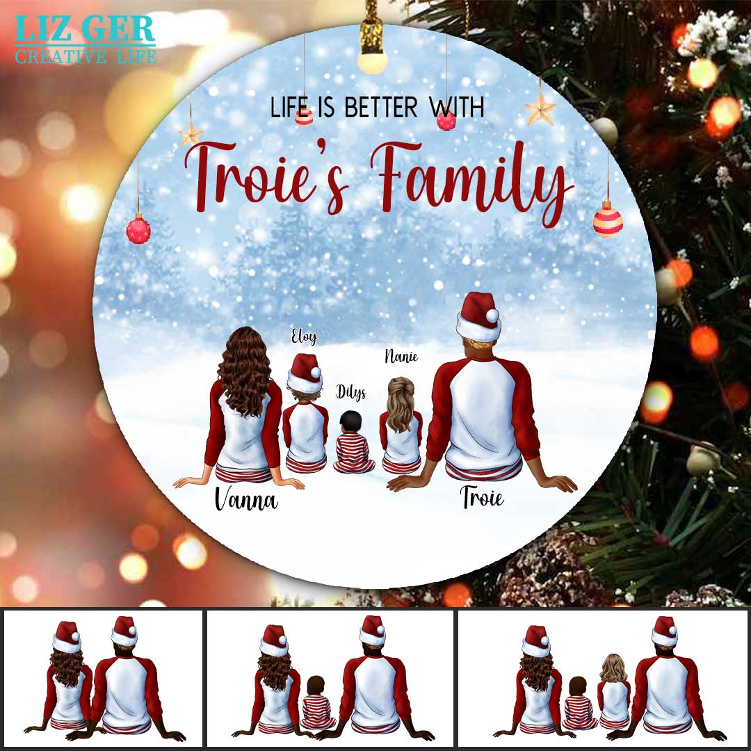 Celebrate what truly matters this holiday season – family. Our personalized Christmas family ornament is a heartfelt keepsake that captures the love, laughter, and togetherness that makes life better. Designed with the touching phrase “Life is Better with Family”, this ornament can be customized with family names, making it a one-of-a-kind treasure for your tree.