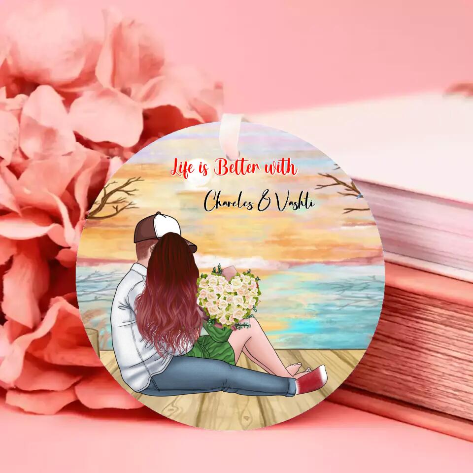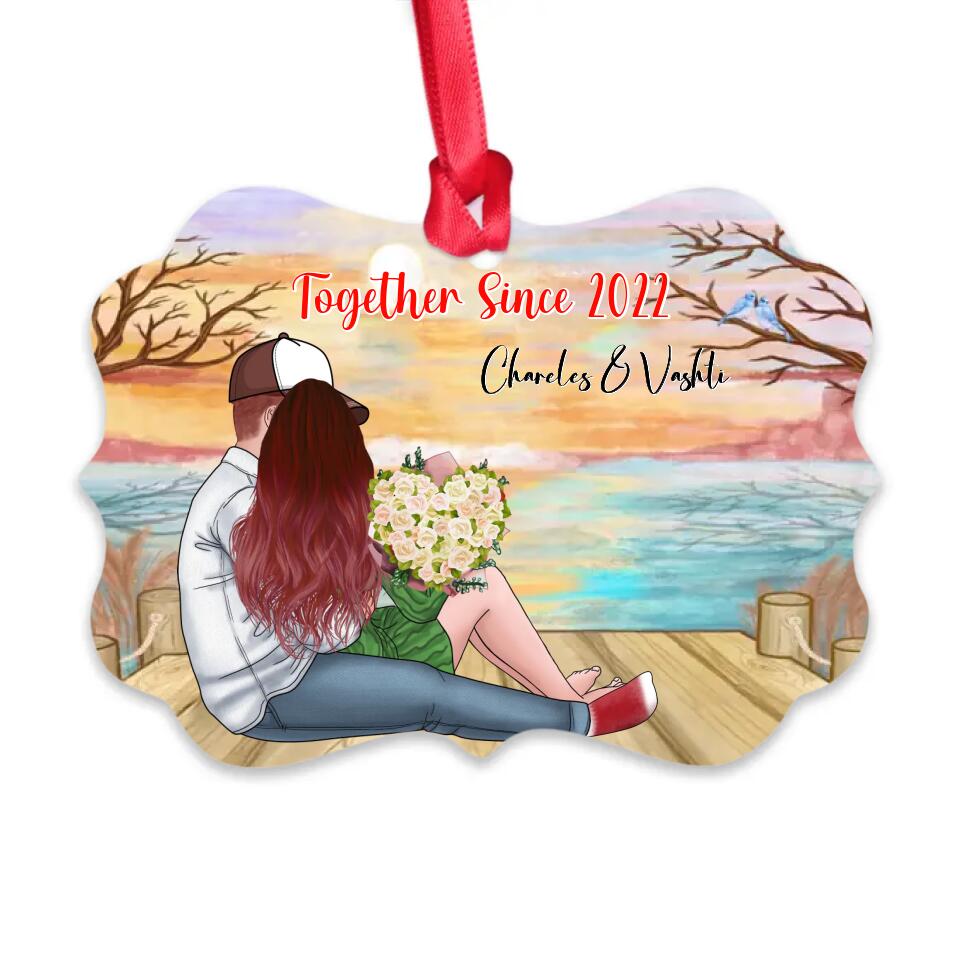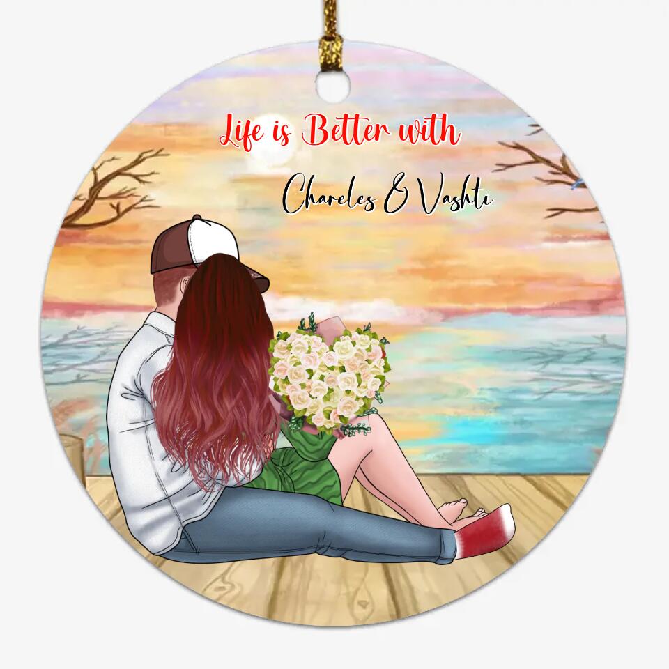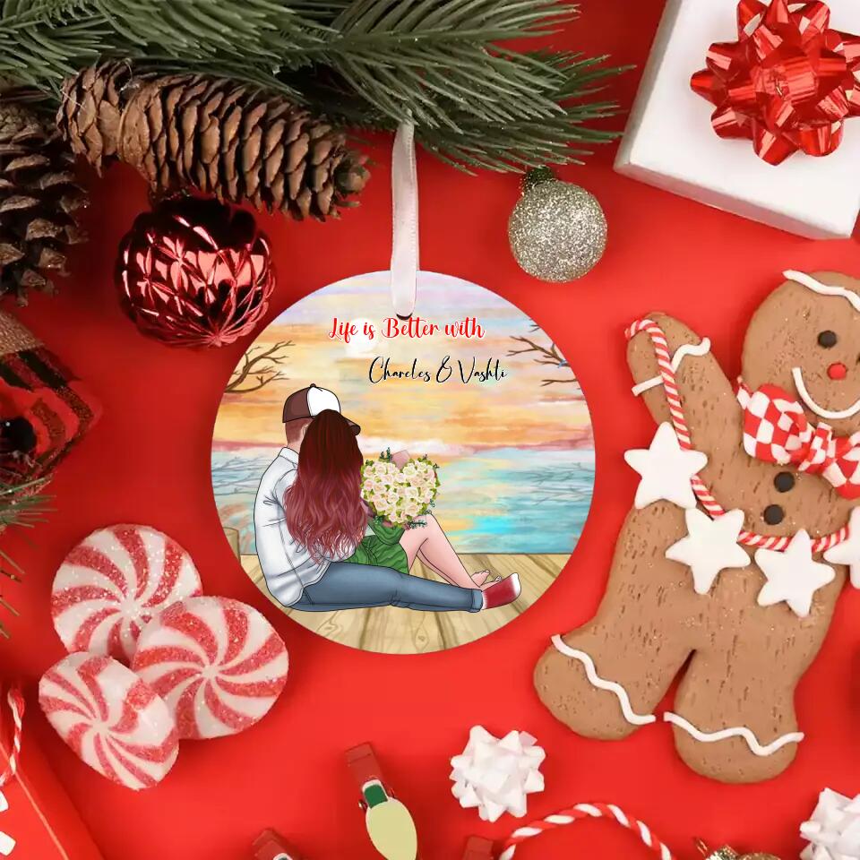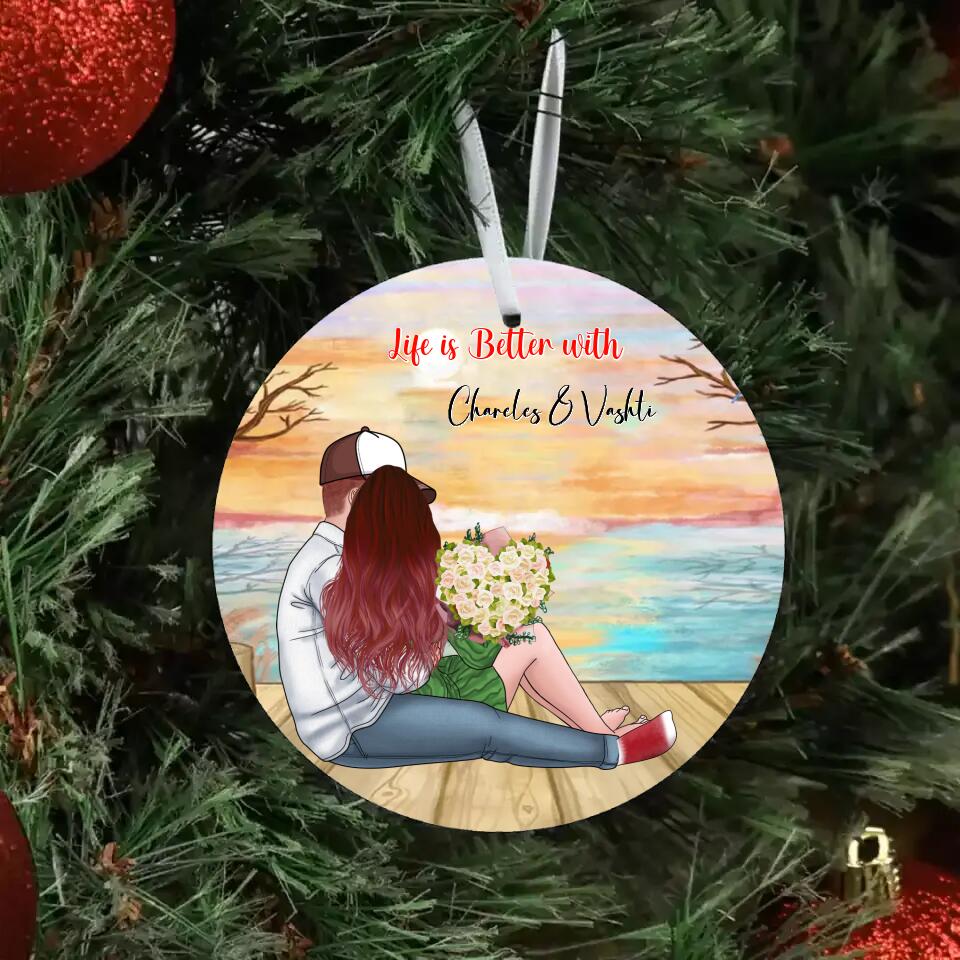 Design personalized gifts for couples and families. This personalized couple and dog ornament is the perfect gift and unique personalization. Not just an ornament, it is a personalized souvenir full of love, with a fun personalized design that makes it the best gift to convey love.
