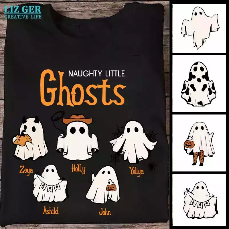 This Halloween, let your mischievous side shine with our “Naughty Little Ghost” Personalized Shirt—the perfect mix of spooky and cheeky!