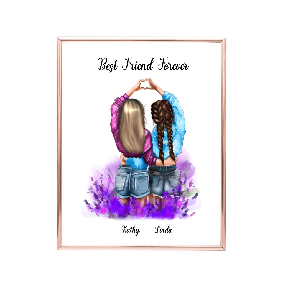 SIsters Poster For 2 - Best Friends Forever Name Personalized Poster Purple Flower BFF Poster Print Gifts
