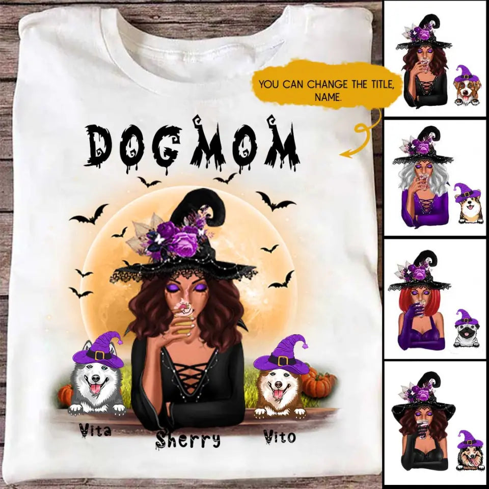 Witch Dog Mom T Shirts - Up to 6 Dogs Halloween T Shirts Customization for Dog Mom